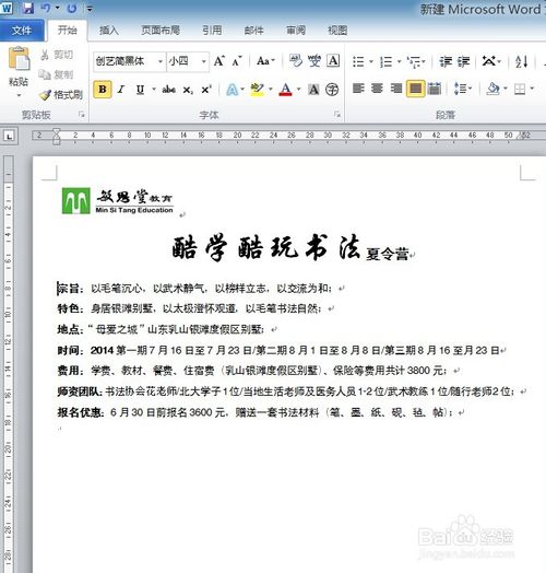 添加要宣传的活动宗旨、时间、地点的主题等内容。如果有表格等,并调整表格布局。
