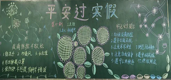 漂亮的寒假黑板报板面设计图——黑板报板面设计、黑板报主题内容:平安过寒假
