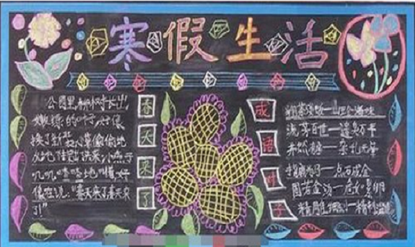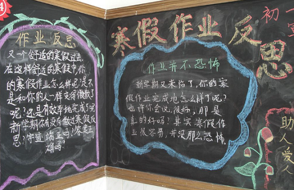 漂亮的寒假黑板报板面设计图——黑板报板面设计、黑板报主题内容:寒假作业