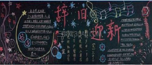 漂亮的寒假黑板报板面设计图——黑板报板面设计、黑板报主题内容:辞旧迎新