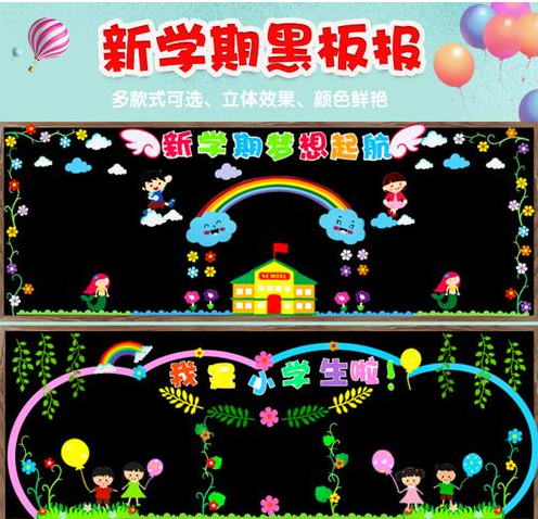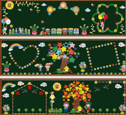 新学期黑板报布置装饰墙贴画 多款小学幼儿园教室班级创意黑板报版面设计图