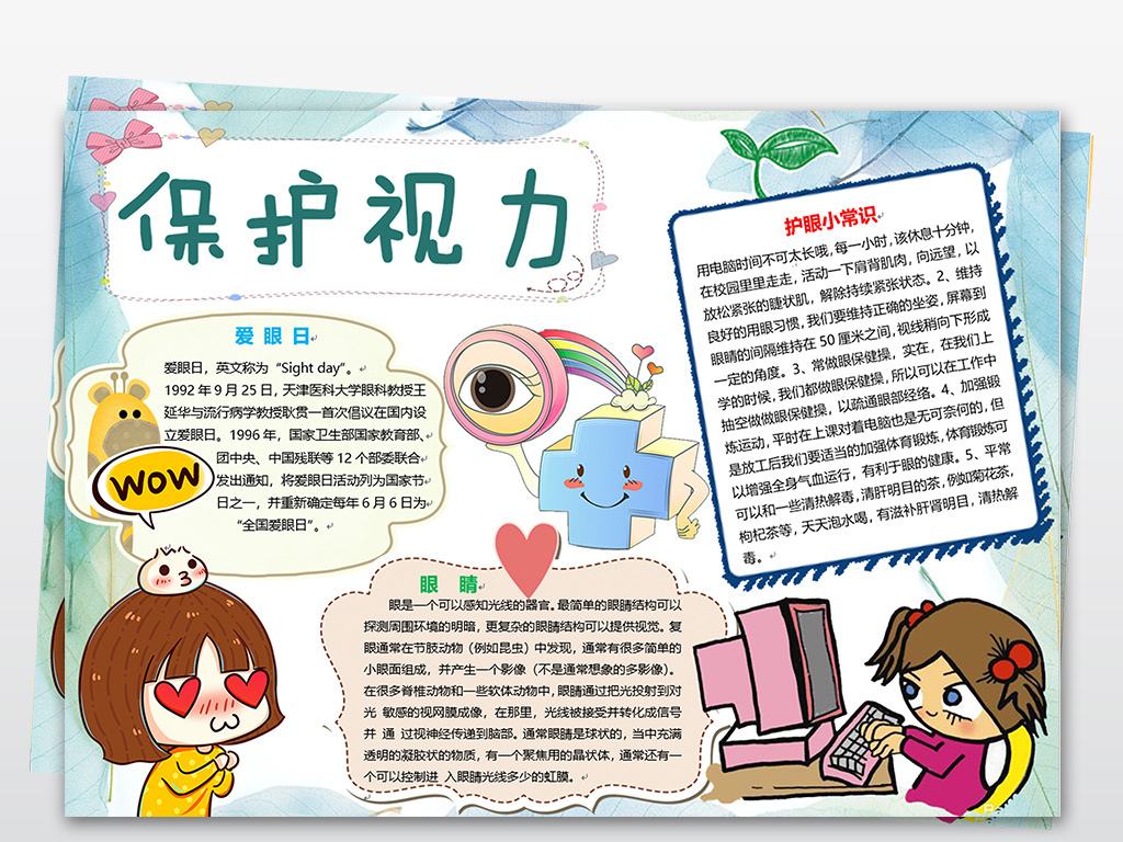 保护视力,关于保护视力,爱眼日,护眼小常识的手抄报模板