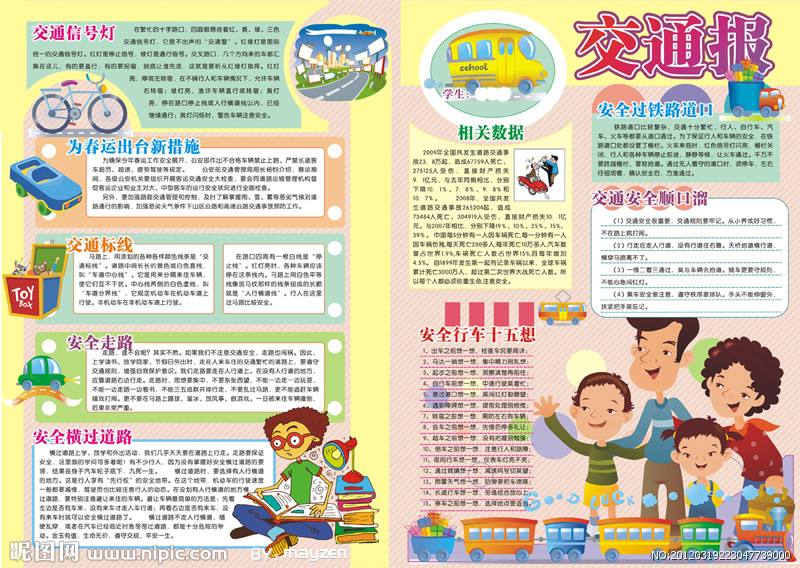 交通报,关于交通规则,关于安全之歌的交通的手抄报模板