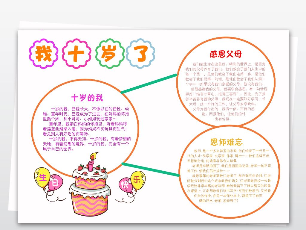 我十岁了,十周岁生日快乐,关于我十周岁生日快乐的手抄报模板