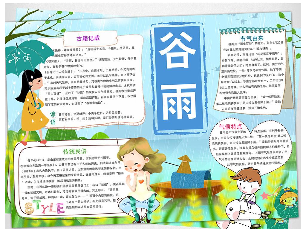 关于谷雨二十四节气中的谷雨的手抄报模板