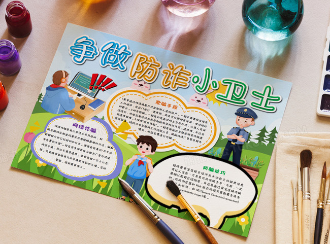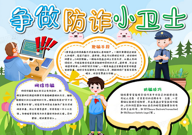 防诈骗手抄报版面怎么设计好看?手抄报版面设计,简单精美的防诈骗手抄报版面设计模版