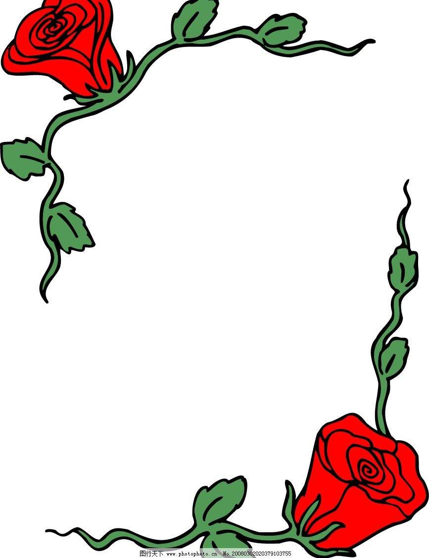 漂亮的玫瑰花和绿叶手抄报边框素材