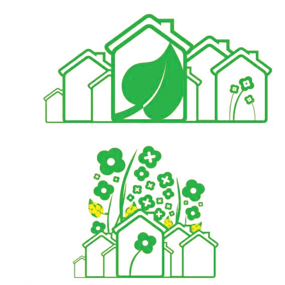 绿色房子,绿色的环境,环保手抄报插图素材