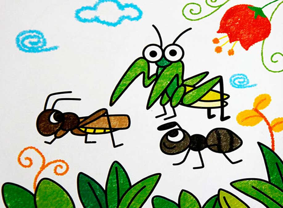 螳螂和蚂蚁简笔画,动画片彩色简笔画,
