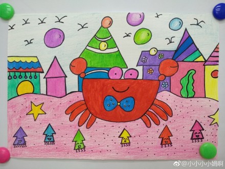海底的大螃蟹,大螃蟹的家儿童水彩画