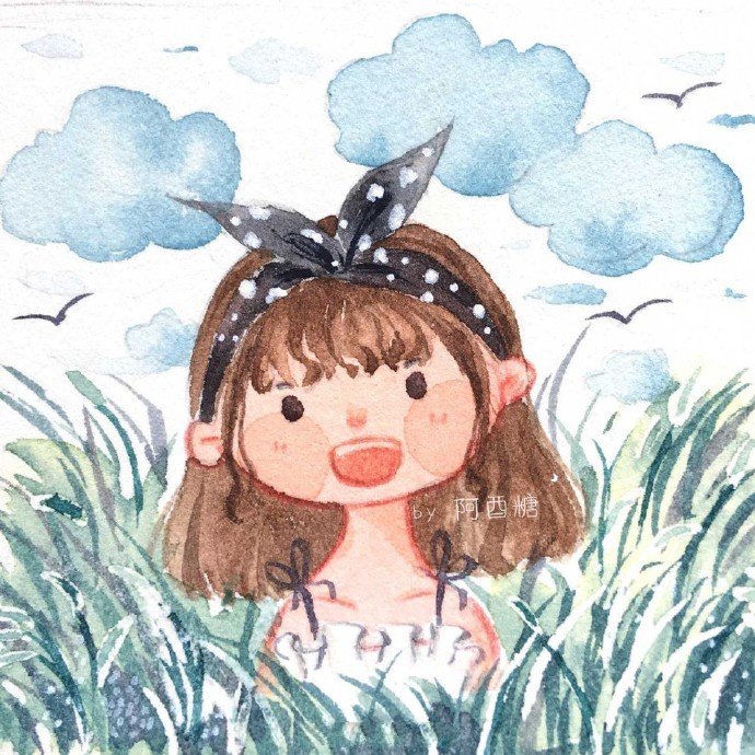 蓝天白云下的小女孩QQ微信账号小清新风格水彩画头像