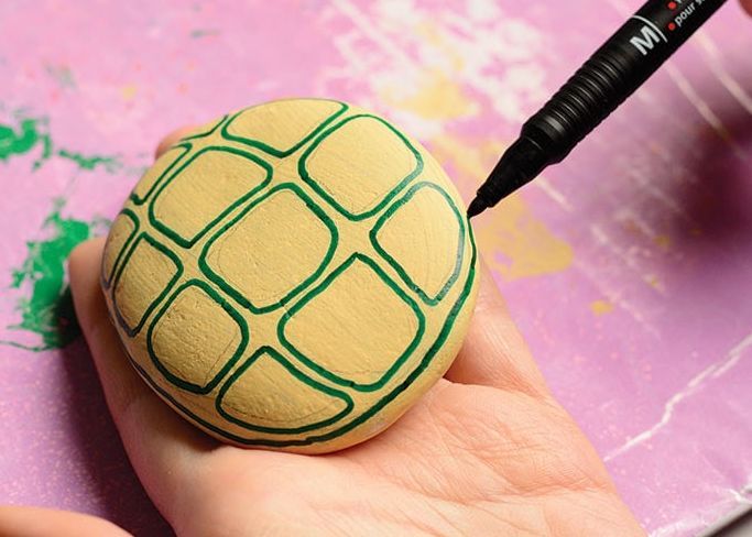 再用记号笔画出一个个小方框,并填充上色,我们的小龟壳就画好了!