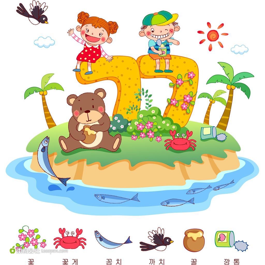儿童插画 小岛上的小朋友