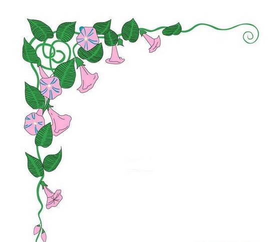 绿色藤蔓+美丽的牵牛花黑板报/手抄报边框素材花边素材