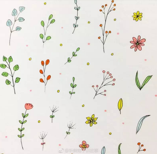手抄报,手账小元素,树叶花朵点缀素材的画法