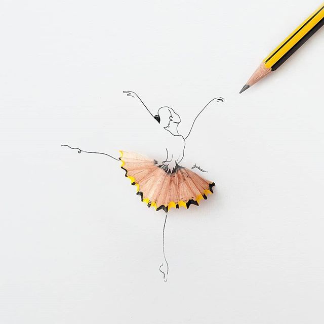 铅笔屑装饰巴黎舞裙创意简笔画,跳舞的女孩创意简笔画
