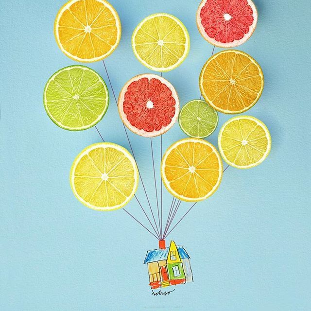 柠檬装饰飞屋环游记创意简笔画,清新搞怪简笔画手机背景素材