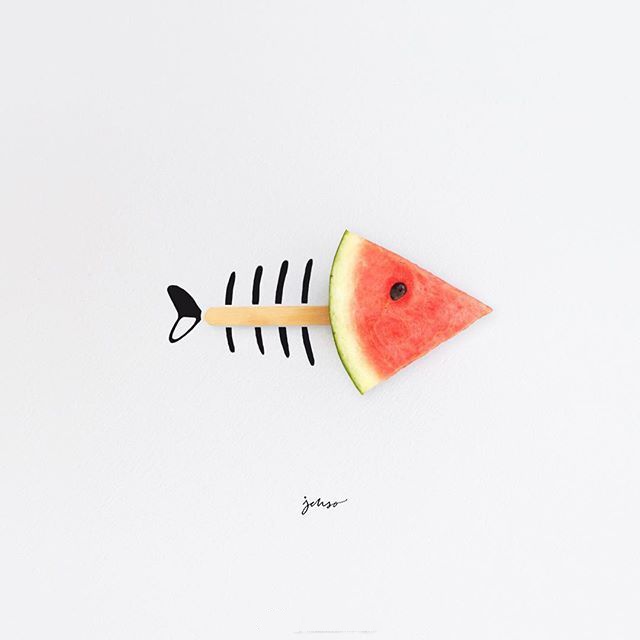 西瓜装饰小鱼,小鱼创意简笔画素材