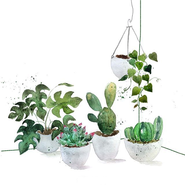 小清新植物水彩画,芦荟,绿萝素材图片集合