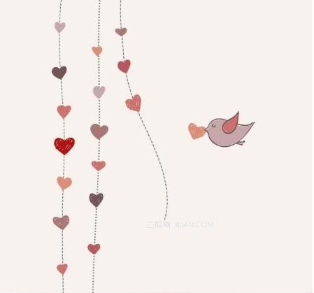 《爱心小鸟》粉嫩的黑板报装饰花边素材