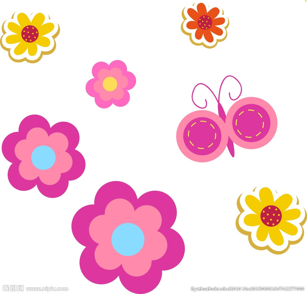美丽的漫画水彩花朵设计素材