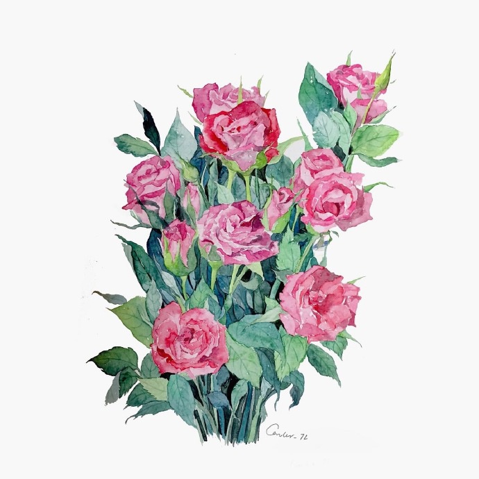 花卉水彩素材欣赏,挪威水彩艺术家作品心情说说微信说说花朵配图素材
