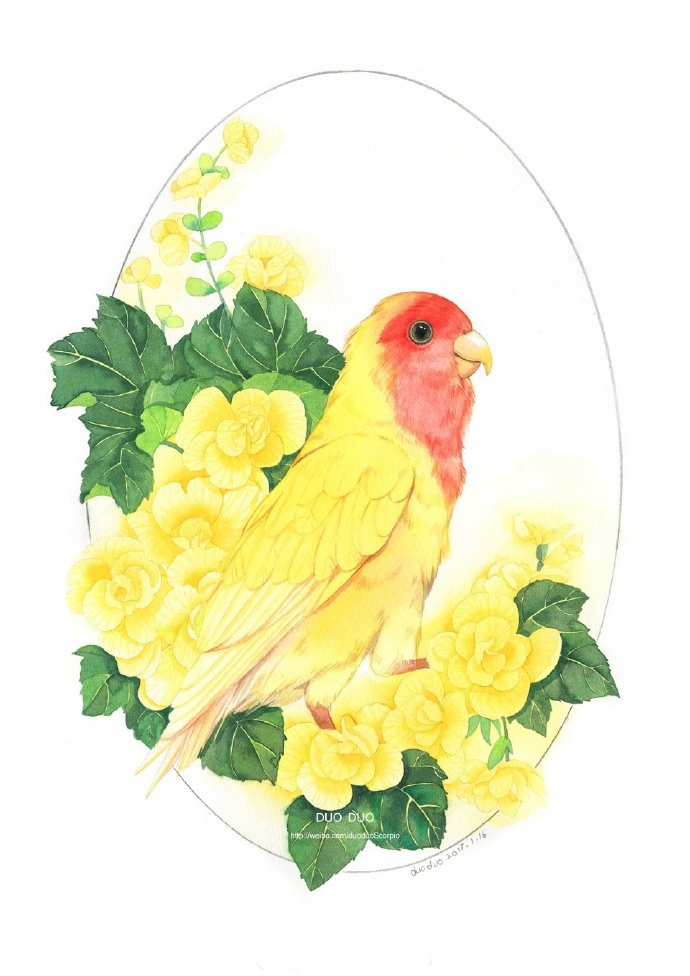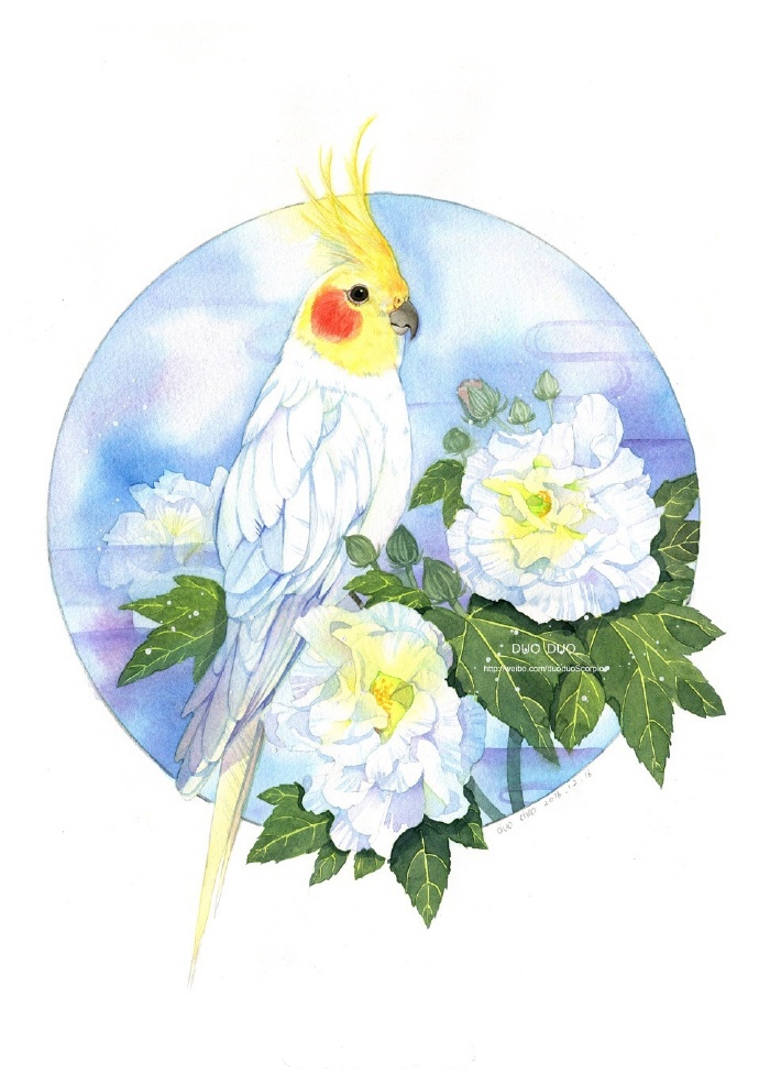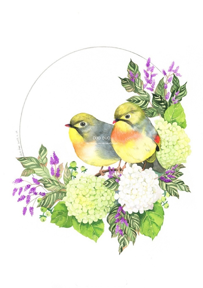 小鸟和花儿古典风水彩图素材,花朵水彩画图片大全