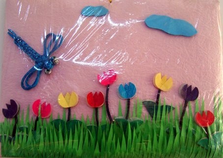 草地蜻蜓剪纸拼接画