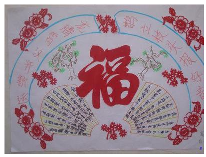 漂亮的春节剪纸手抄报绘画小报