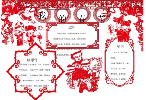 漂亮的春节剪纸绘画手抄报