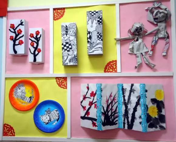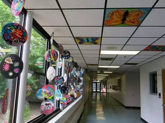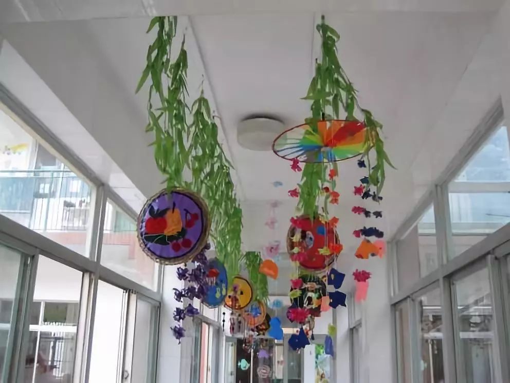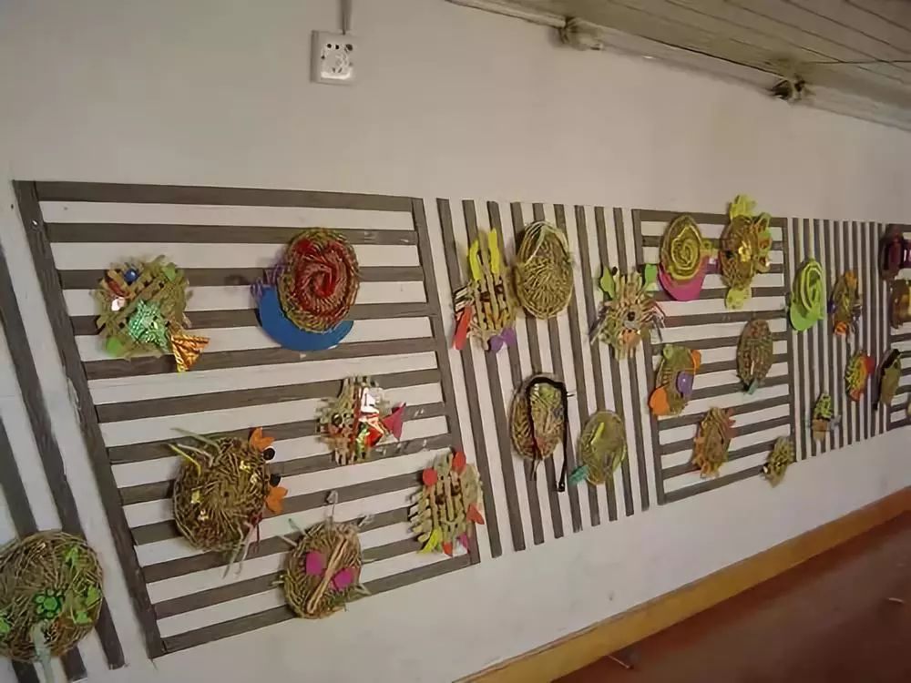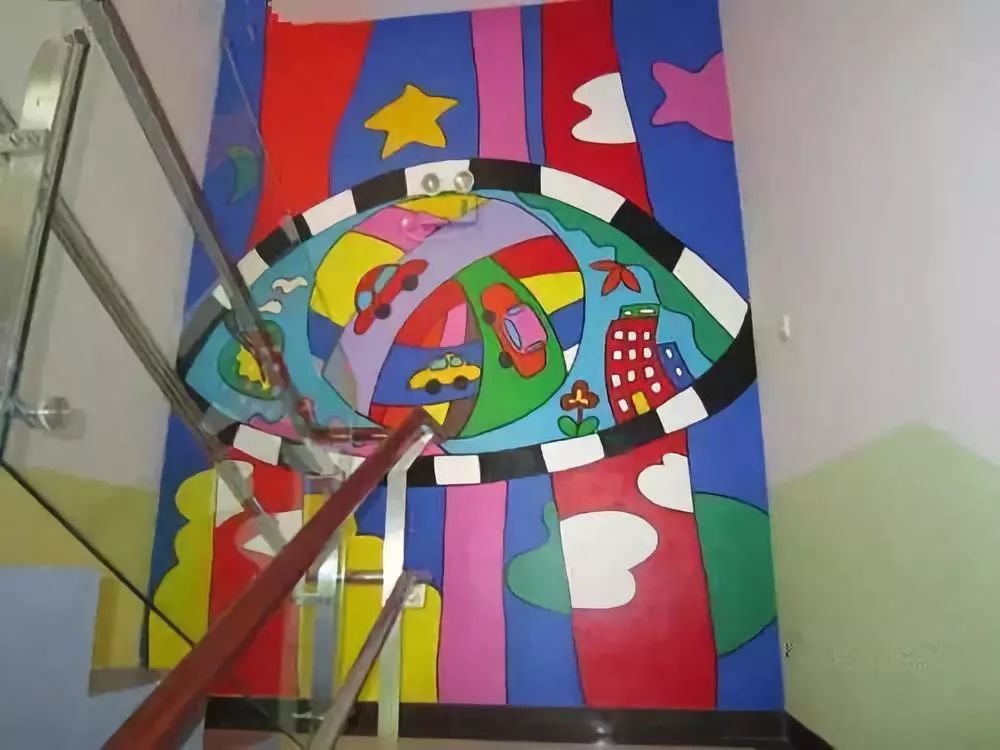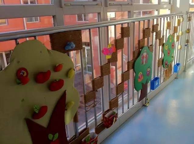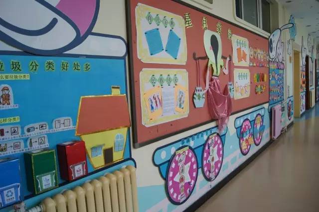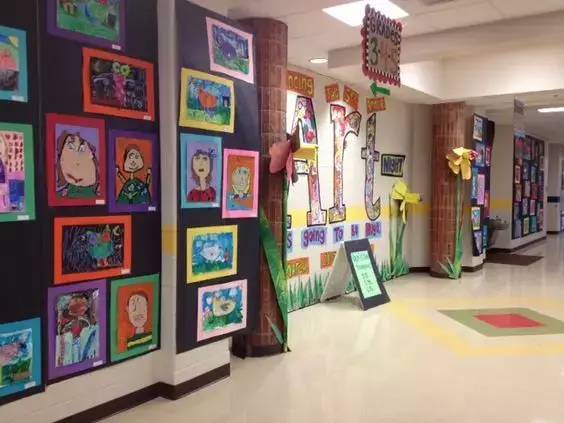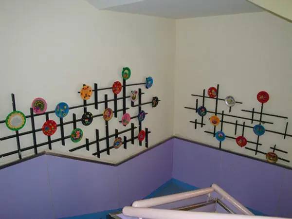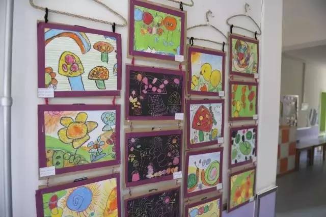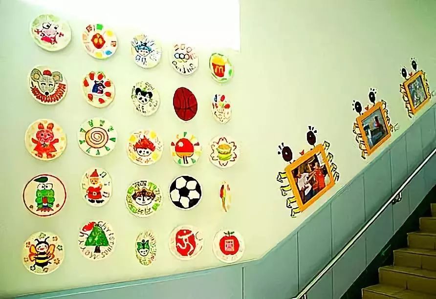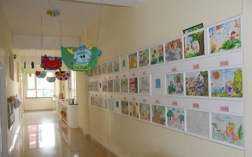 以美术主题和美工作品的陈列为主,把走廊布置成一个小型画廊,这也是受很多幼儿园青睐的做法,走廊包括楼梯两侧的墙面就是天然的展区,老师们只需把美工区作品陈列的技巧应用进来,包你得心应手