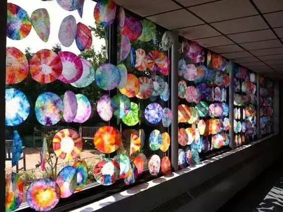 将挂盘等作品挂在走廊一侧的窗户上,既是作品展览又是美丽的窗饰。