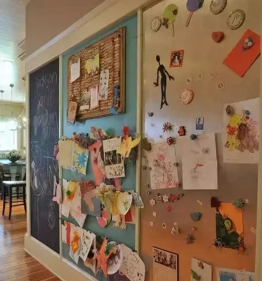 在走廊的墙上挂一块大黑板,你的画廊就有了自由创作区,让孩子们参与进来,与墙面互动。