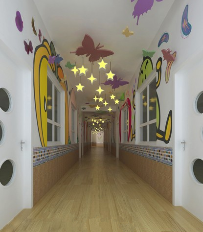 今天给大家分享的是幼儿园走廊灯光、墙饰及墙体环境设计大全