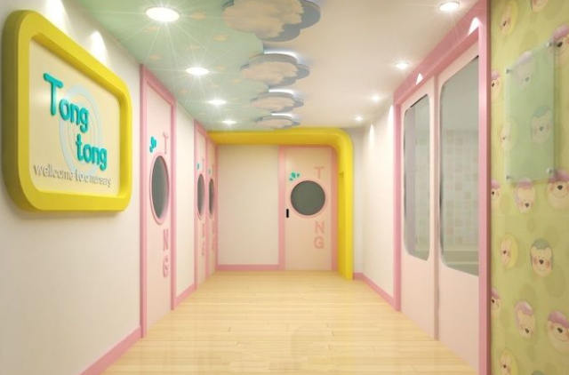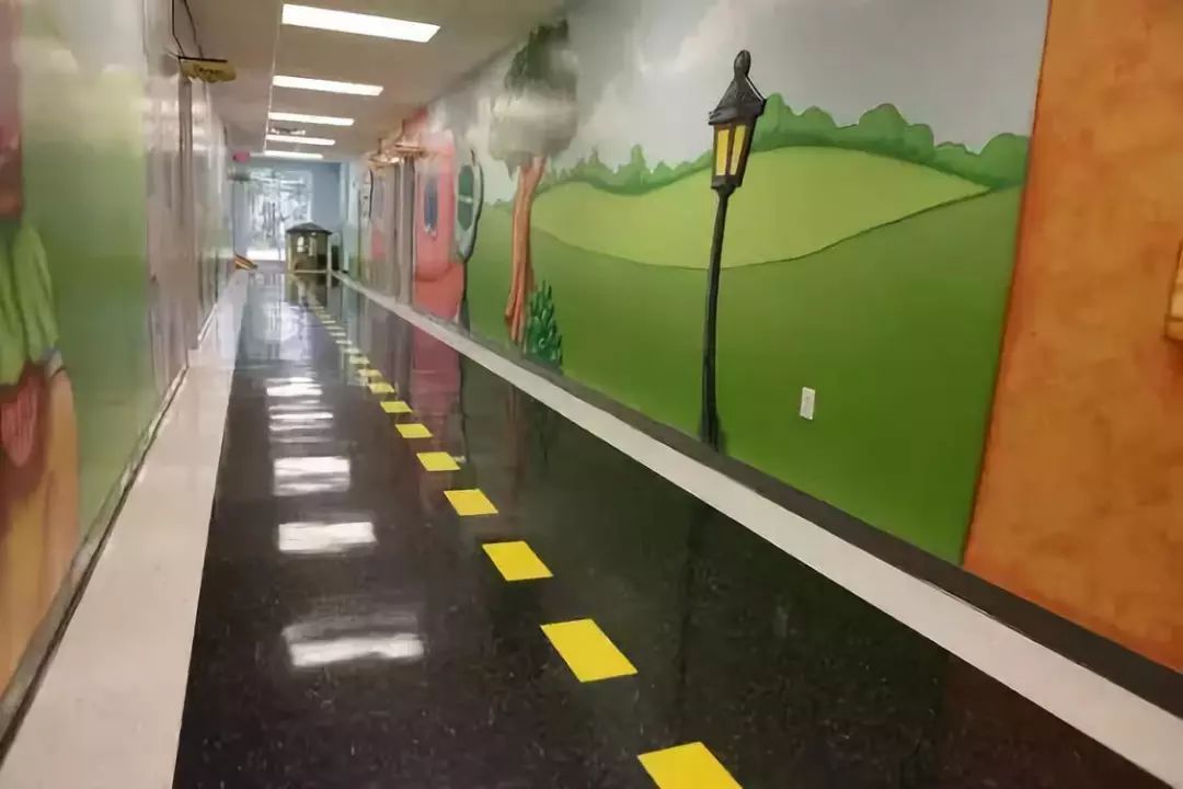 你可以让绘本中可爱的主人公遍布走廊的各个角落,指引大家去往正确的方向。