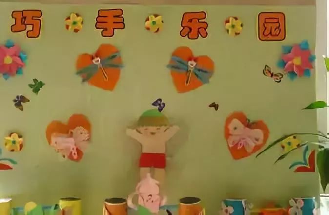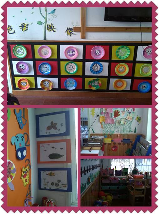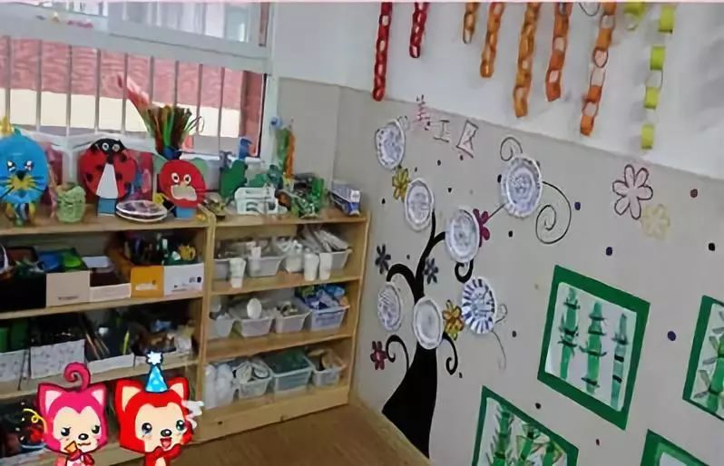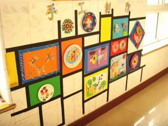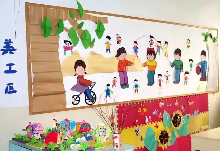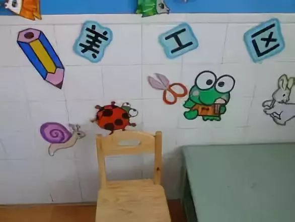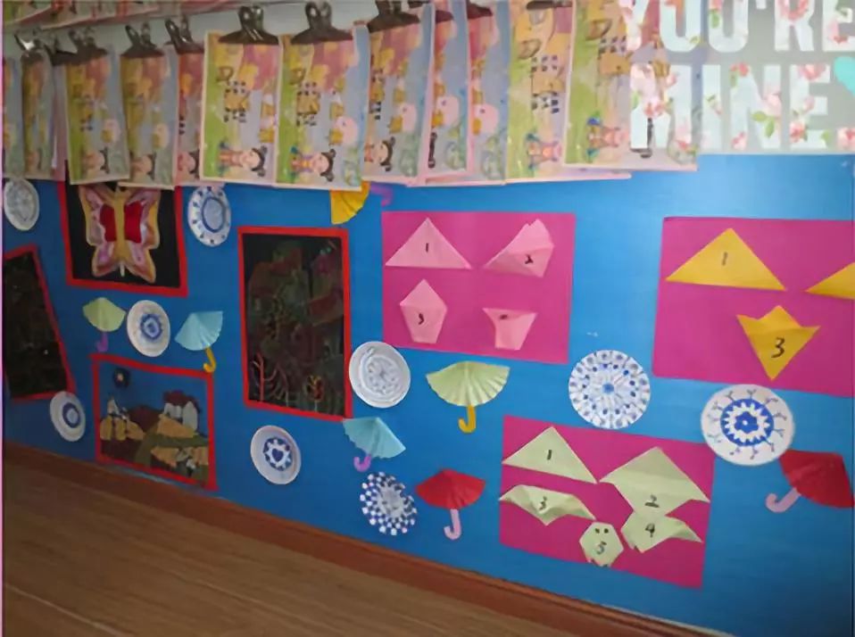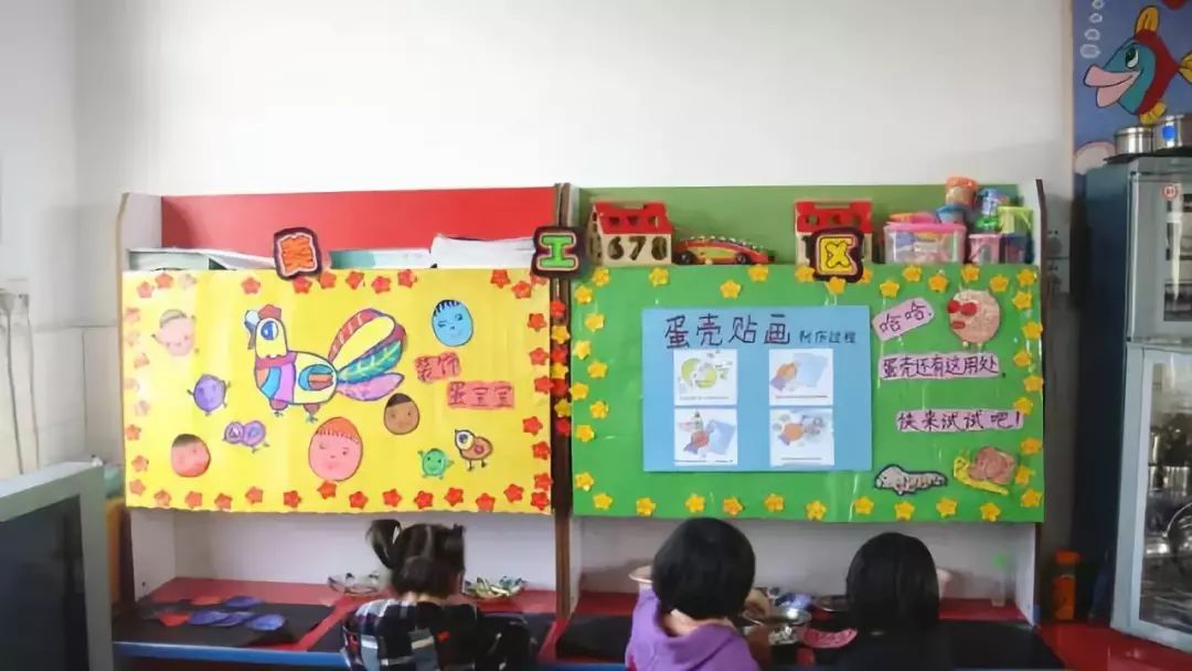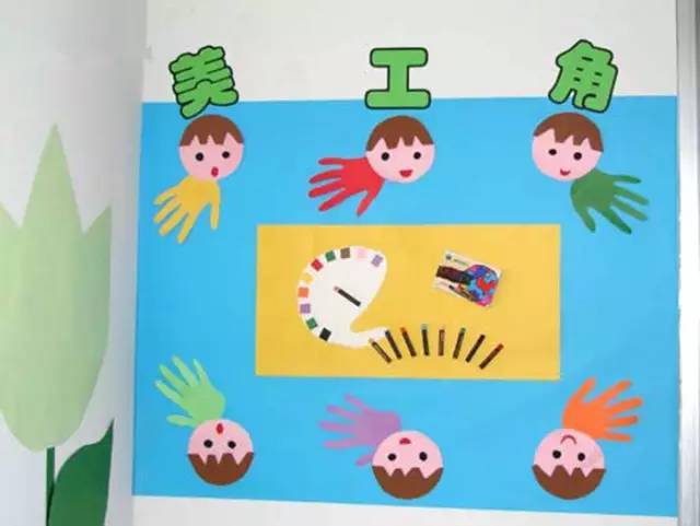 把美工区的墙面设计的美美的,孩子们才能爱上美工喔!