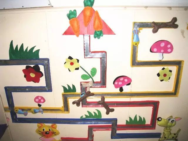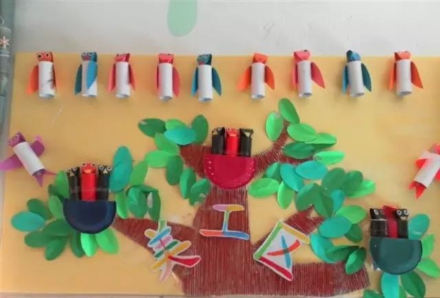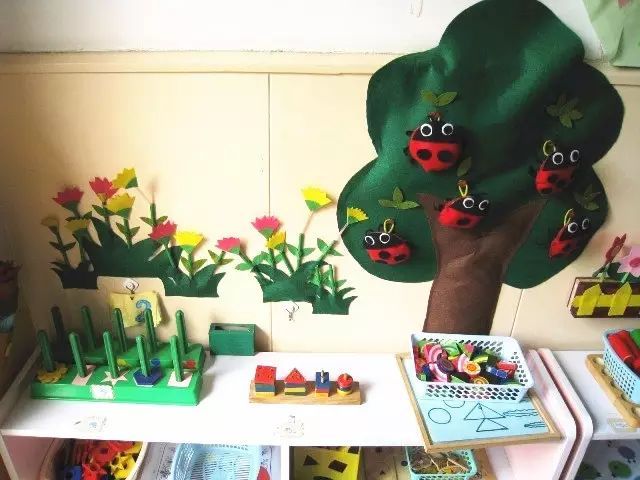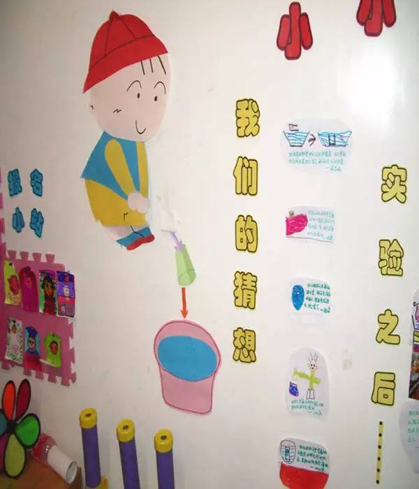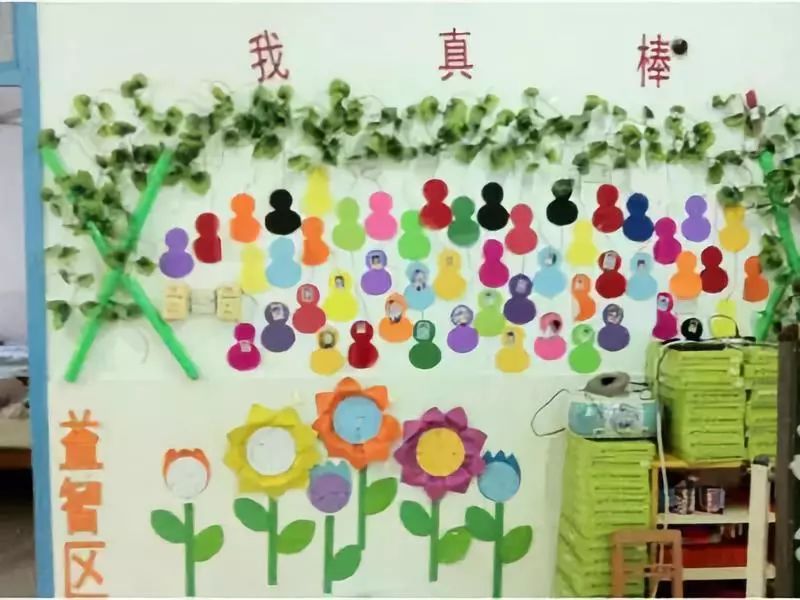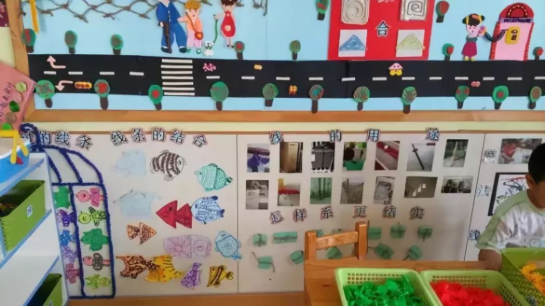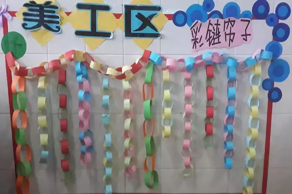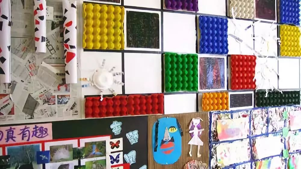 把美工区的墙面设计的美美的,孩子们才能爱上美工喔!