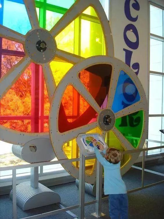 用不同颜色的画片尝试将阳光变成不一样的色彩