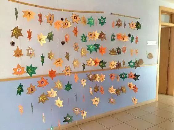 九月开学季往往伴随着美丽的秋天一起到来,让我们把教室装扮一番,迎接这个丰收的季节吧~纸片枫叶打造出的创意走廊布置,还贴着宝宝的小照片哦~