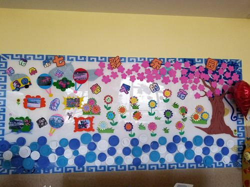 彩色的春天,带给我们无限的生机,主题墙盛开鲜花朵朵,孩子们有自己的小手装饰春天,心中无比开心。