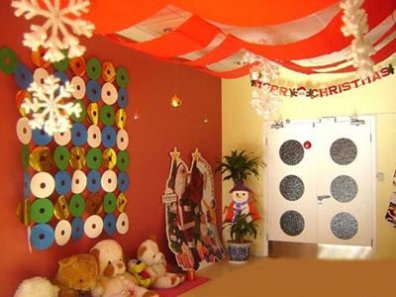 幼儿园圣诞节主题墙布置:光盘创意