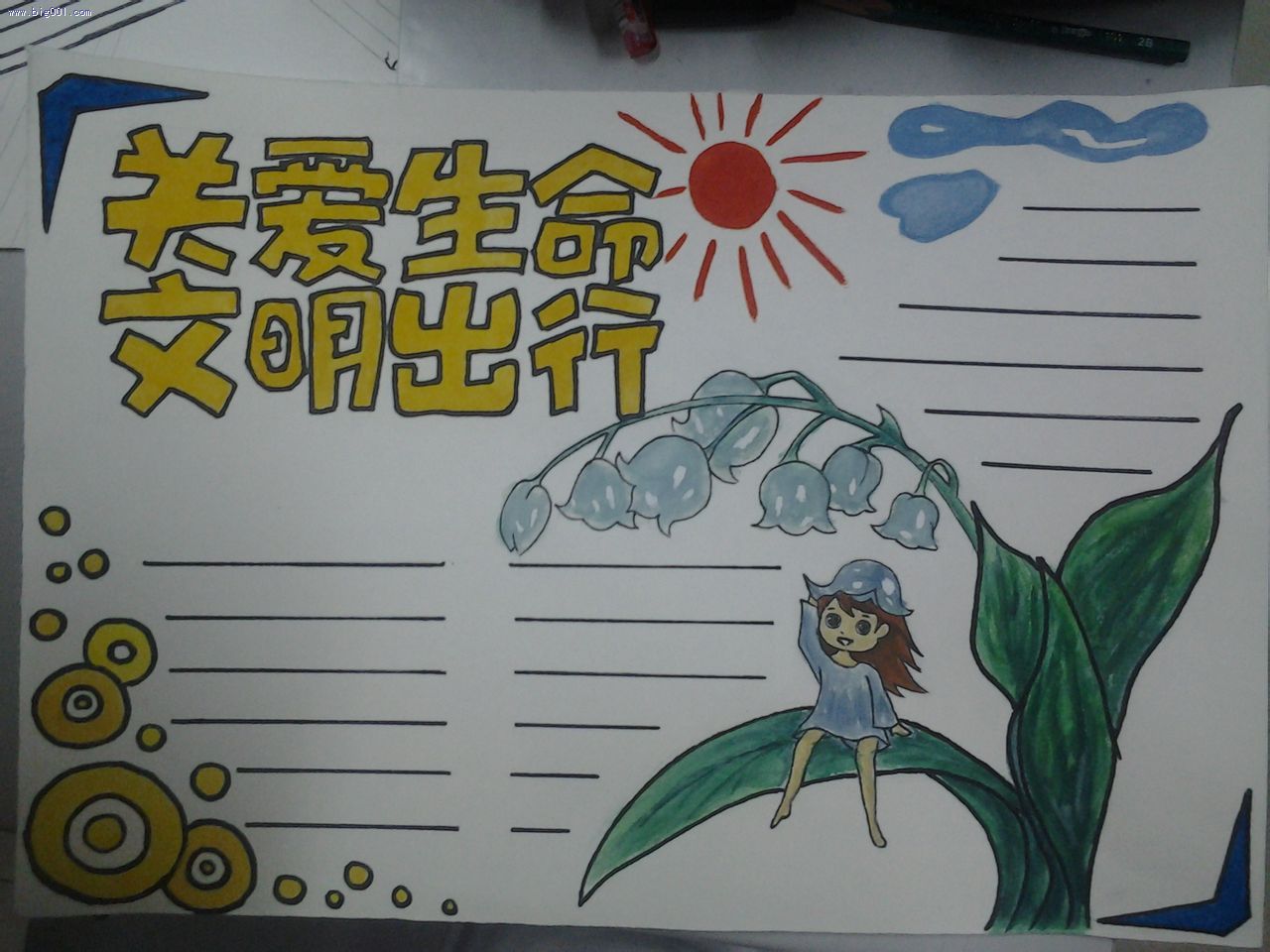 亲爱的小朋友们,大家知道手抄报的版面是怎样划分的吗?版面划分先把版面划分成两块,每块中还可以再分成片。划分文章块面时,要有横有竖,有大有小,有变化和有对称的美,也可绘画图案进行划分。你们知道了吗?