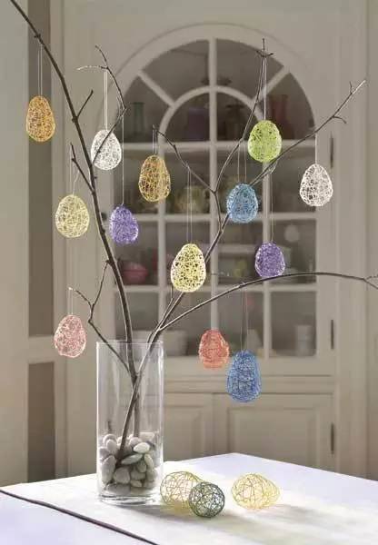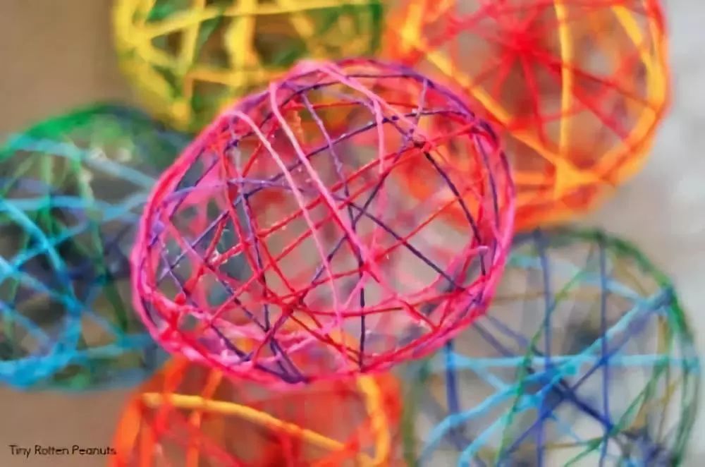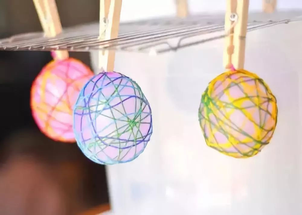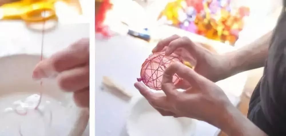 之后,用牙签或针戳破小气球,留下硬化的毛线