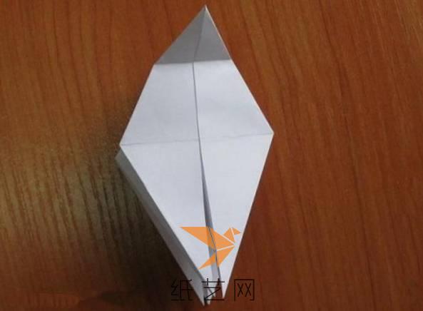 第6步:下面来将一个角的边折叠到折痕的位置,但只要将折痕压在靠近角的位置就可以了