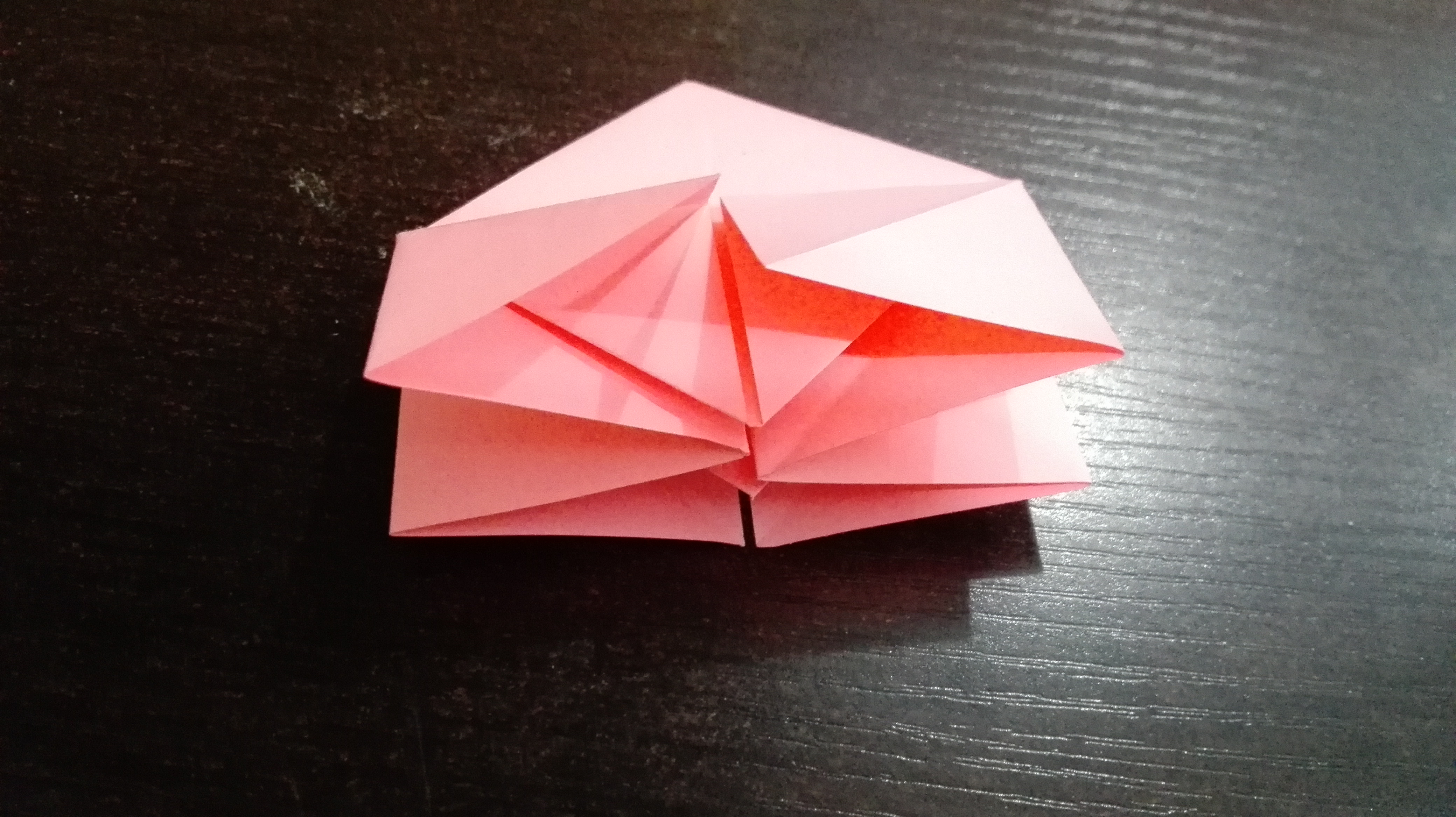 1把纸折成三角 2 打开再折 3 把三角鼓起来 4把角对折 5鼓起来 6中间剪短点再翻过来在剪点 7把三角折起来 8把顶头折短点 9翻过来就好了