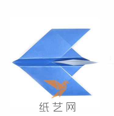 第10步:这样折叠完成之后,将折纸飞机立起来,从上往下看