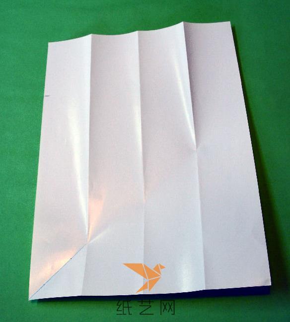 第6步:然后打开,将下面的边折叠到中间折痕的位置