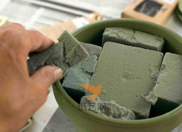 第3步:将花泥塞到花盆里面