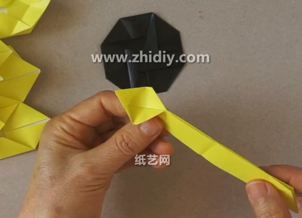 下面看到的即为这个手工折纸花向日葵手工折法制作教程:
