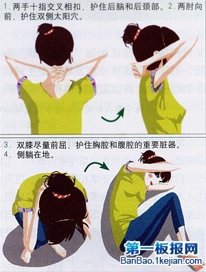 若被推倒,要设法靠近墙壁。面向墙壁,身体蜷成球状,双手在颈后紧扣,以保护身体最脆弱的部位。